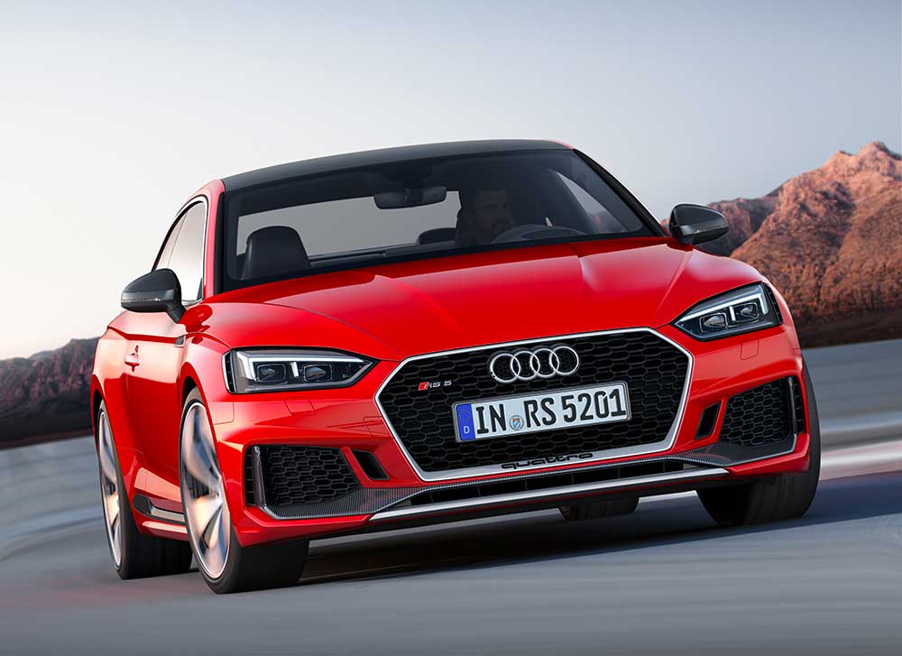 Audi, Cenevre Otomobil Fuarı’nda RS 5 Coupe’yi tanıttı. 1900-5000 d/d arasında 450 HP güç ve 600 Nm tork üreten 2.9 lt çift turbolu V6 TFSI motora sahip olan otomobil, 0-100 km/s hızlanmasını sadece 3.9 sn’de tamamlıyor. Alman markanın yeni tasarım akımını yansıtan ilk Audi modeli olan RS 5, standart olarak 250 km/s hıza ulaşıyor ama 280 km/s’lik bir dinamik paket de mevcut.