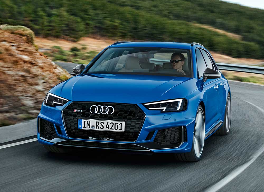 Audi’nin RS geçmişinin son ürünü olan Audi RS 4 Avant, önceki modellerde de görülen yüksek performansın gündelik kullanımına uyumunun yeni örneği. Audi RS 4 Avant’ın dördüncü nesli tasarımında Audi 90 quattro IMSA GTO’nun detaylarından esinlenilmiş. Tipik RS petek yapılı masif hava girişleri ve geniş, düz tek çerçeveli ızgara da belirleyici bir unsur. 0’dan 100 km/s hıza sadece 4.1 saniyede ulaşan RS 4 Avant, isteğe bağlı RS dinamik paketiyle 280 km/s maksimum hıza çıkabiliyor.