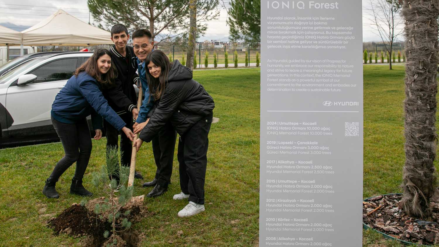 Sürdürülebilirlik ve geri dönüşüm alanında milyarlarca dolarlık yatırımları ve projeleri olan Hyundai Motor Company’nin dünya genelindeki 1 milyon ağaç dikme hedefine dahil olan Hyundai Assan bursiyerleri, gönüllü çalışanları ve Türk Eğitim Vakfı temsilcileri de yeni bir farkındalık hareketi oluşturarak ülkemizdeki ormanların sayısının artmasına önemli bir katkı sağladı. Kocaeli Umuttepe’deki IONIQ Ormanı, Hyundai’nin biyoçeşitliliğine katkı sağlarken aynı zamanda ormansızlaşmanın önlenmesi hedefine de yardımcı oluyor. Hyundai, bu projeyle sadece doğaya katkı sağlamakla kalmayıp, gençlerin sürdürülebilir bir geleceğe olan bağlılığını da destekliyor.