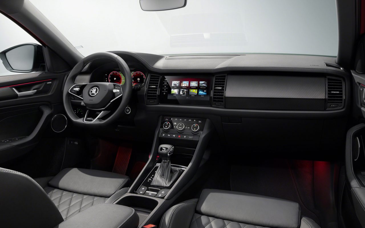 Skoda, yeni dekoratif şeritler, ek kontrast dikişler ve geliştirilmiş LED ortam aydınlatma işlevleri sunarak Kodiaq’ın iç mekânının görünümünü ve hissini yeni bir düzeye taşımış. Seçenekler arasında ilk kez çok yönlü elektrikli koltuk ayarı, havalandırma ve masaj işlevine sahip ergonomik koltuklar da yer alıyor. İsteğe bağlı olan Eco koltuklar, geri dönüştürülmüş malzemelerden üretilmiş döşemelere sahip. 575 Watt’lık Canton ses sistemi, ön paneldeki merkezi hoparlöre ve bagajdaki subwoofer’a ek olarak, artık sekiz yerine on hoparlör sunan bir başka isteğe bağlı ekstra özellik. 10.25 inç ekrana ve dört farklı düzene sahip olan sanal kokpit çoğu donanım seviyesi için bir seçenek olarak mevcut ancak Kodiaq vRS için standart olarak geliyor. Skoda’nın yeni çok işlevli iki kollu deri direksiyon simidi artık Kodiaq’ta da mevcut olacak. SportLine ve vRS versiyonlarında üç kollu spor direksiyon kullanılmaya devam edecek. Yeni direksiyon simidinin opsiyonel olan bir özelliği de sürücünün direksiyon simidine sürekli olarak dokunup dokunmadığını tespit edebiliyor oluşu. Bu da tıbbi acil durumların hemen tespit edilmesine olanak tanıyor.
