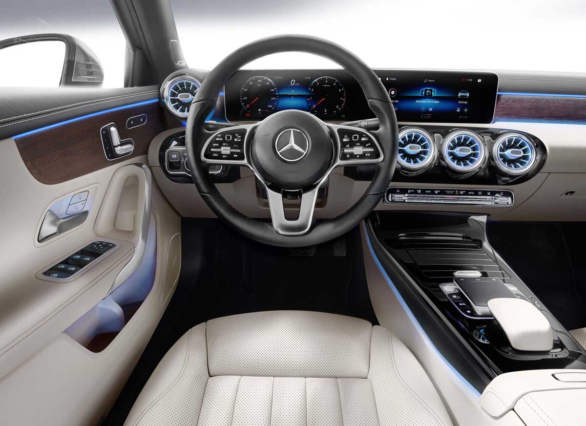 Baz donanımda bile dokunmatik ekranlı yeni bilgi ve eğlence sistemi MBUX ve aktif fren yardımcısı ile aktif şerit takip yardımcısı da dâhil en güncel sürüş yardım sistemleri standart olarak sunuluyor. Style ve AMG donanım paketleriyle sunulan A-Serisi Sedan, bunun dışında gece paketi ve farklı özel donanımlarla kişiselleştirilebiliyor. Örneğin arka tamponun altına ayağın uzatılmasıyla bagaj kapağının otomatik olarak açılmasını sağlayan “hands-free-access”, eller serbest bagaj açma fonksiyonuna sahip Keyless-Go konfor paketi, söz konusu özel donanımlardan sadece biri. Mercedes-Benz’in kompakt sınıfta devrim niteliği taşıyan yenilikçi iç mekân yaklaşımıyla A-Serisi Sedan, modern kavramını yeniden tanımlıyor. İç mekân tasarımı, gösterge paneli ile başlıyor; gösterge panelinin üzerini örten bir koruma bulunmadığı için gösterge panelinin gövdesi havada süzülüyor hissi veriyor. İsteğe bağlı olarak 64 renk seçeneği sunan ambiyans aydınlatması, havada süzülme etkisini daha da güçlendiriyor. Tamamen dijital gösterge paneli isteğe bağlı olarak sunulurken türbin görünümlü havalandırma çıkışları sportiflik vurgusunu arttırıyor. Yeni Mercedes-Benz A-Serisi Sedan’ın kokpit tasarımı; iki adet 7.0 inçlik ekran, bir adet 7.0 inç ve bir adet 10.25 inçlik ekran ve son olarak iki adet 10.25 inçlik ekran olmak üzere üç farklı seçenek ile sunuluyor. Yeni A-Serisi, aynı zamanda “Mercedes me connect” için yeni bir dönemin başlangıcı olan yenilikçi bilgi ve eğlence sistemi MBUX ile yollara çıkan ilk Mercedes-Benz modeli olma özelliğini taşıyor.