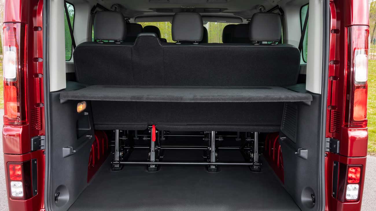 Yeni Trafic Combi 8+1 versiyonu 5480 mm uzunluğu sayesinde 1.8 metreküp bagaj alanından ödün vermeden, sürücü dahil dokuz kişiye kadar yolcu ağırlayabiliyor. Şık tasarımı, modüler yapısı, araç içi konforu ve otomatik şanzımanı ile bireysel ve ticari kullanıcıların beklentilerini karşılamayı hedefliyor. Ön bölümde versiyona bağlı olarak 80.6 litreye kadar depolama kapasitesi sunulan yeni Trafic Combi daha iyi bir saklama alanı dağılımı ile optimize edilmiş. Bir tanesi sürücünün önünde, diğeri ön konsolun orta bölümünde olmak üzere iki yeni eşya gözü bulunuyor. Bu bölmeler versiyona göre kapaklı ya da kapaksız olarak sunulurken, sırasıyla 0.8 litre ve 3.0 litre saklama alanına sahipler. Yeni Trafic Combi, sürücü ve ön yolcu kapılarında da toplamda 14.6 litre eşya saklama alanına sahip.