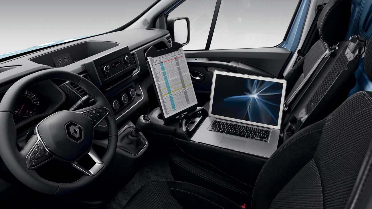 Renault Trafic Panelvan zekice tasarlanan çözümleriyle profesyonel müşteriler için olmazsa olmaz bir ticari araca dönüşüyor ve sunduğu mobil ofis özelliği ile fark yaratıyor. Katlanabilir ön yolcu koltuğu not defteri yerleştirme alanı ile bir ofis masası ya da öğle tatillerinde bir yemek masası olarak kullanılabiliyor. Yeni Trafic ailesi, Standart R&Go radyonun yanı sıra opsiyonel olarak alınabilen Renault Easy Link 8.0 inç dokunmatik multimedya sistemi ve Apple CarPlay ile ticari araçlardaki bağlanabilirliği yeni bir seviyeye çıkarıyor. Ayrıca opsiyonel olarak tercih edilebilen 15W gücündeki kablosuz şarj cihazı, USB girişleri ve 12V şarj soketi ile konforlu bir yolculuk deneyimi sunuluyor. Yeni Trafic, versiyona bağlı olarak eller serbest Renault Kart teknolojisi ile donatılıyor. Bu teknoloji sürücü yaklaştığında araca dokunmadan kilidin otomatik olarak açılmasını sağlarken, uzaklaştığında ise tamamen kilitlenmesini sağlıyor. Konforu önemli oranda artıran bu sistem, aynı zamanda güvenlik ihtiyaçlarına da cevap veriyor ve günlük sürüş deneyimine katkı sağlıyor.